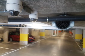 De parkeergarage is voorzien van beveiligingscamera’s. Camera’s zijn geplaatst op de entree deuren van de garage; iedere kenteken van de auto wordt door de camera opgenomen. Goed gepositioneerde camera’s zorgden voor een goed volgsysteem, waardoor rijdende auto’s door een minimaal aantal camera’s worden gefilmd.